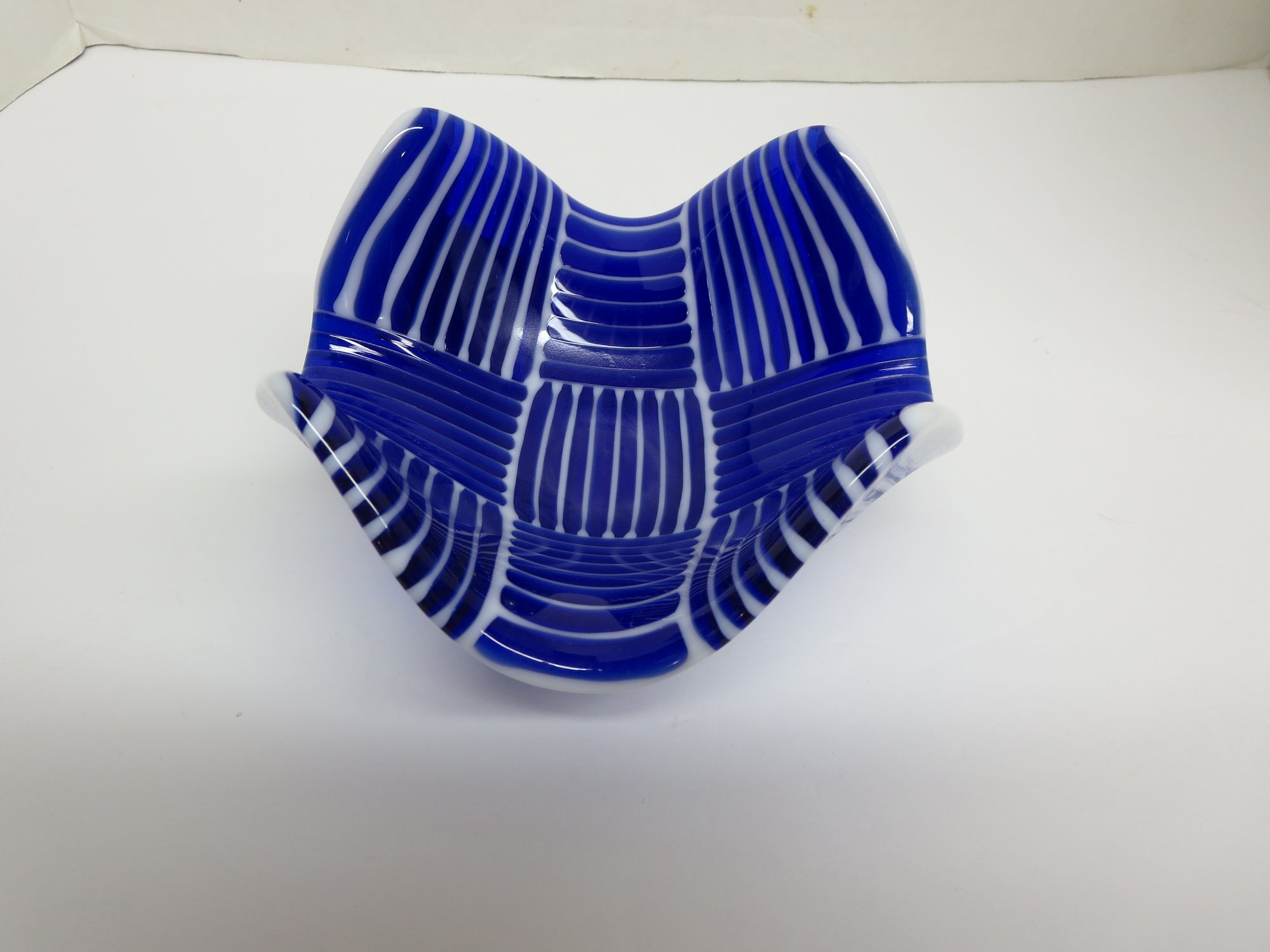 A 6" x 6" fused glass bowl. Can be used to hold a votive candle or your favorite candy. Would make a perfect welcome to the neighborhood gift.